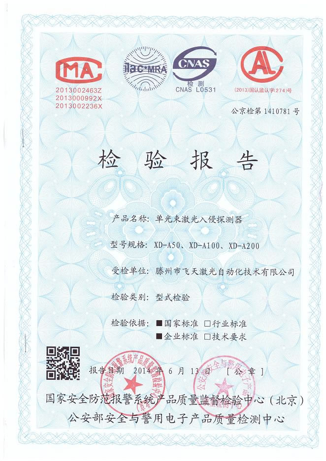 • XD-A50、XD-A100、XD-A200检验报告