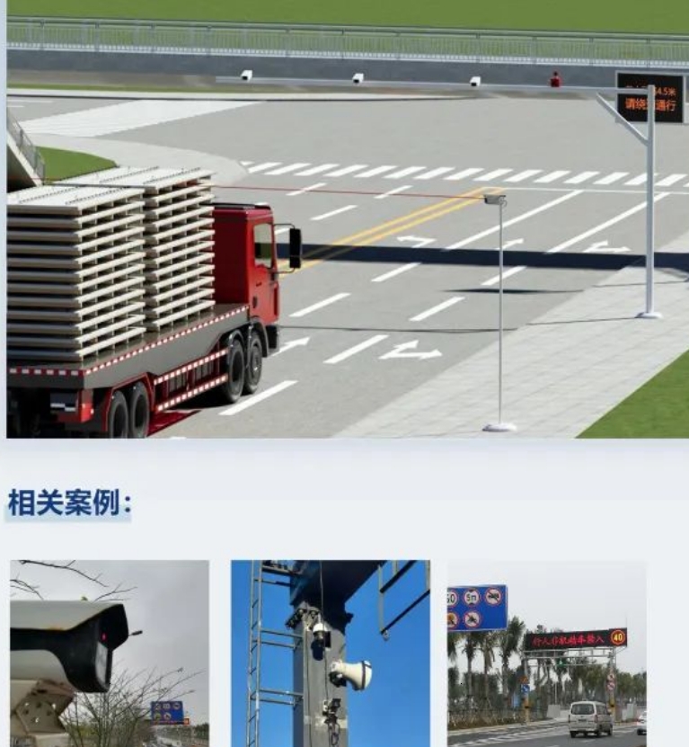 针对场景:适用于城市天桥、高架桥、隧道入口、收费站、服务区等需要精确控制车辆高度的场所,有效拦截试图违规通过的超高车辆。
