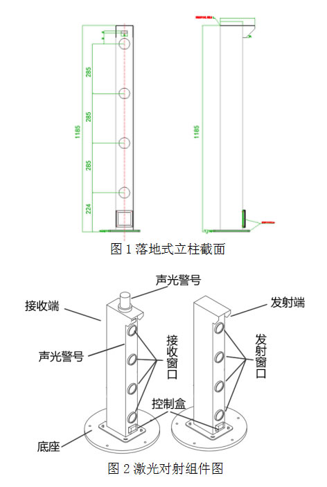 便携式四光束激光入侵探测器采用四层对射式结构,以四道不可见光束为警戒线,以每对探测器为防范单元,可连续布设并直接驱动现场声光报警设备。