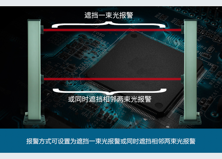 报警方式可设置为遮挡一束光报警或同时遮挡相邻两束光报警。