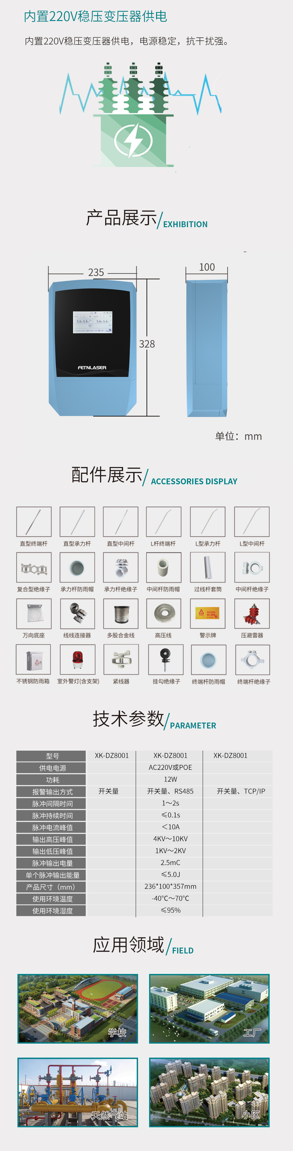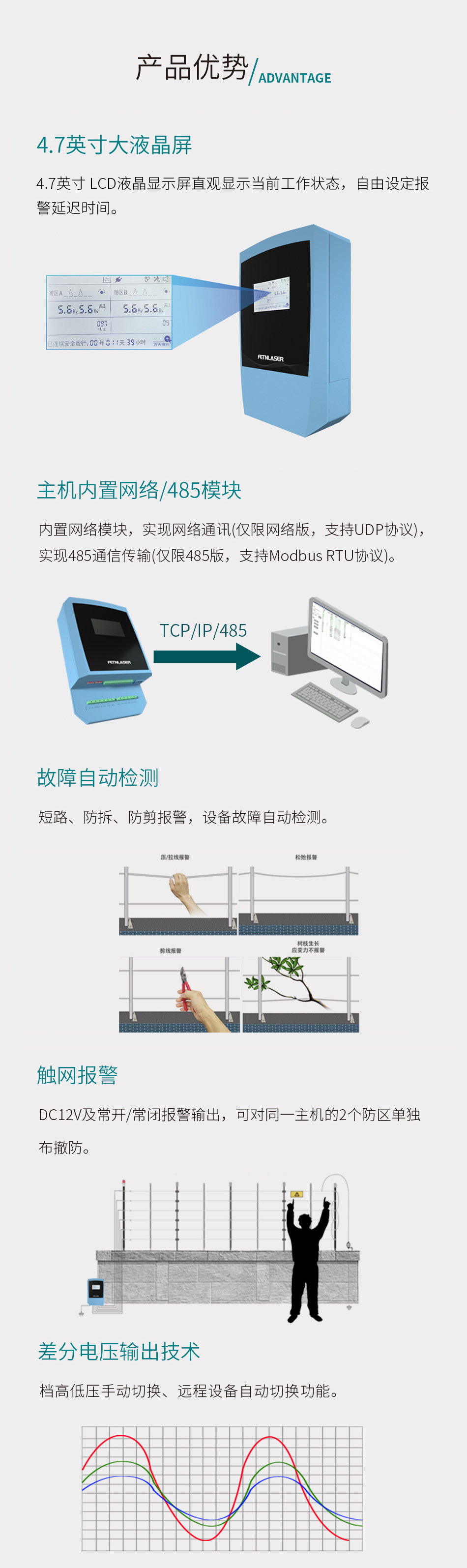 脉冲式电子围栏以“阻挡威慑为主,报警为辅”为基准,通过像脉搏一样间断通电,达到不伤人的防盗围栏;