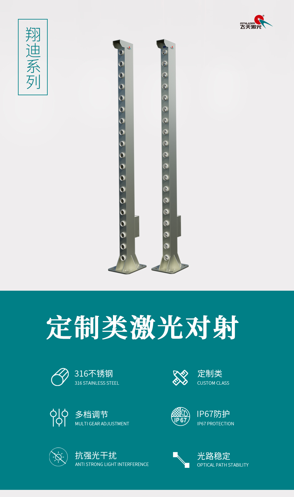 飞天雷视定制型激光对射19光束激光入侵探测器报警器厂家直销