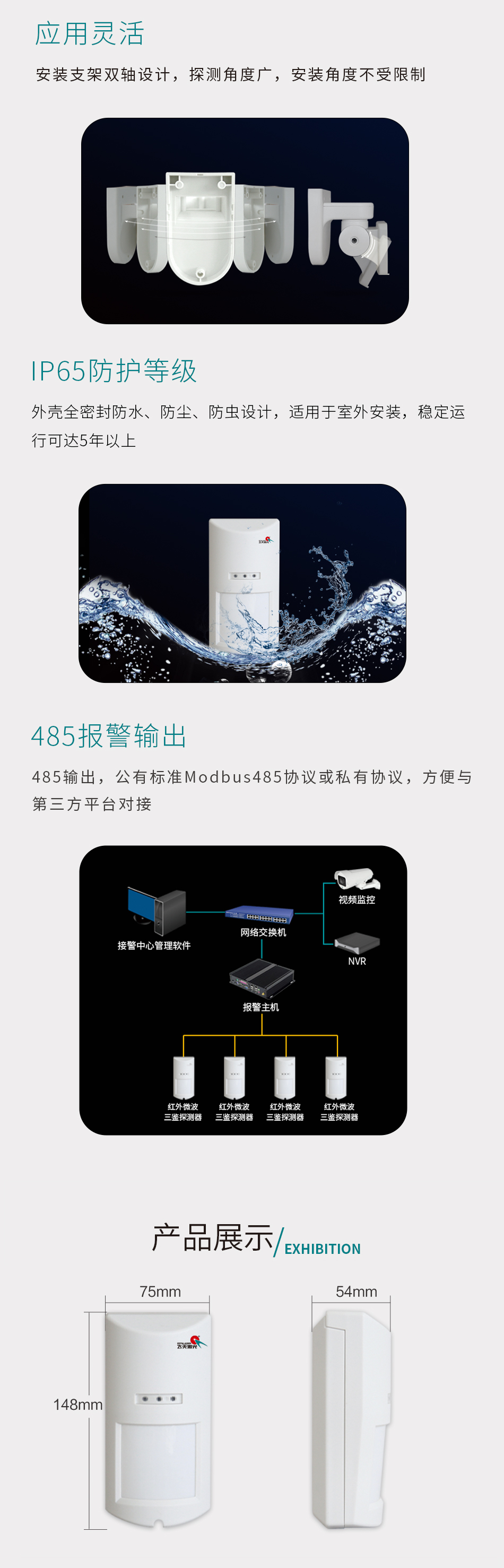 红外微波三鉴探测器,(485)室内入侵防盗报警器