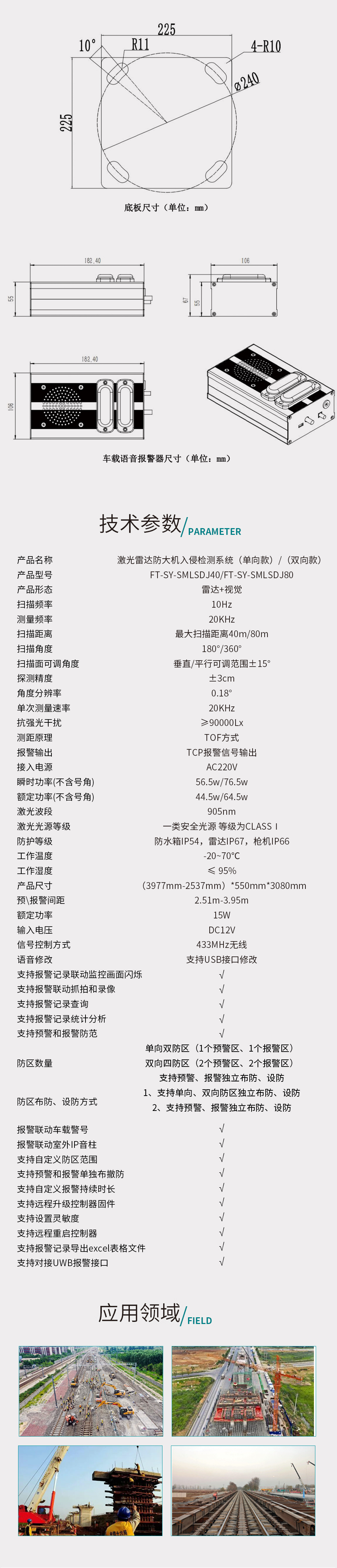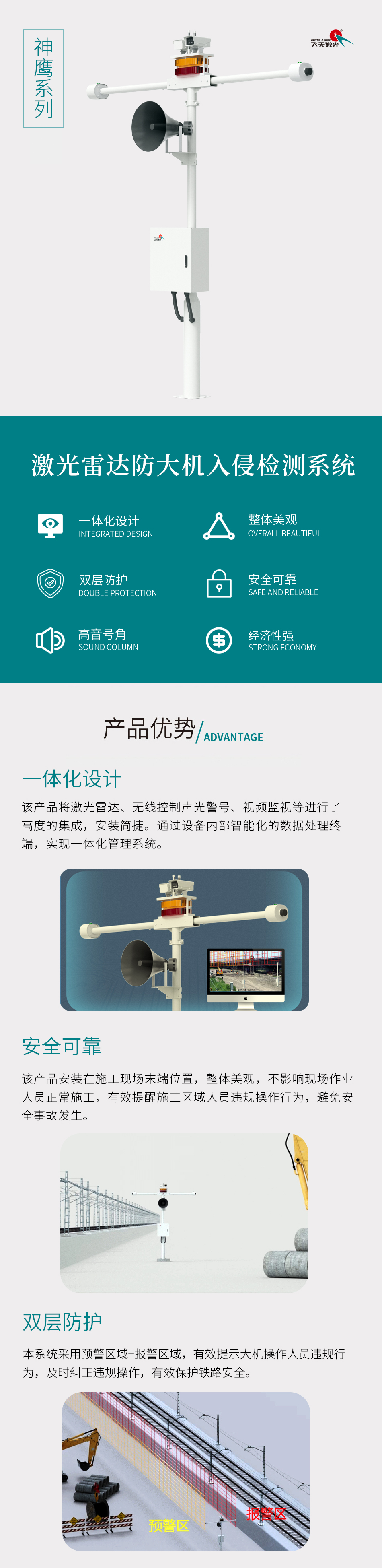 激光雷达防大机入侵检测系统将激光雷达、无线控制声光警号、视频监视等进行了高度的集成,安装简捷。通过设备内部智能化的数据处理终端,实现一体化管理系统。