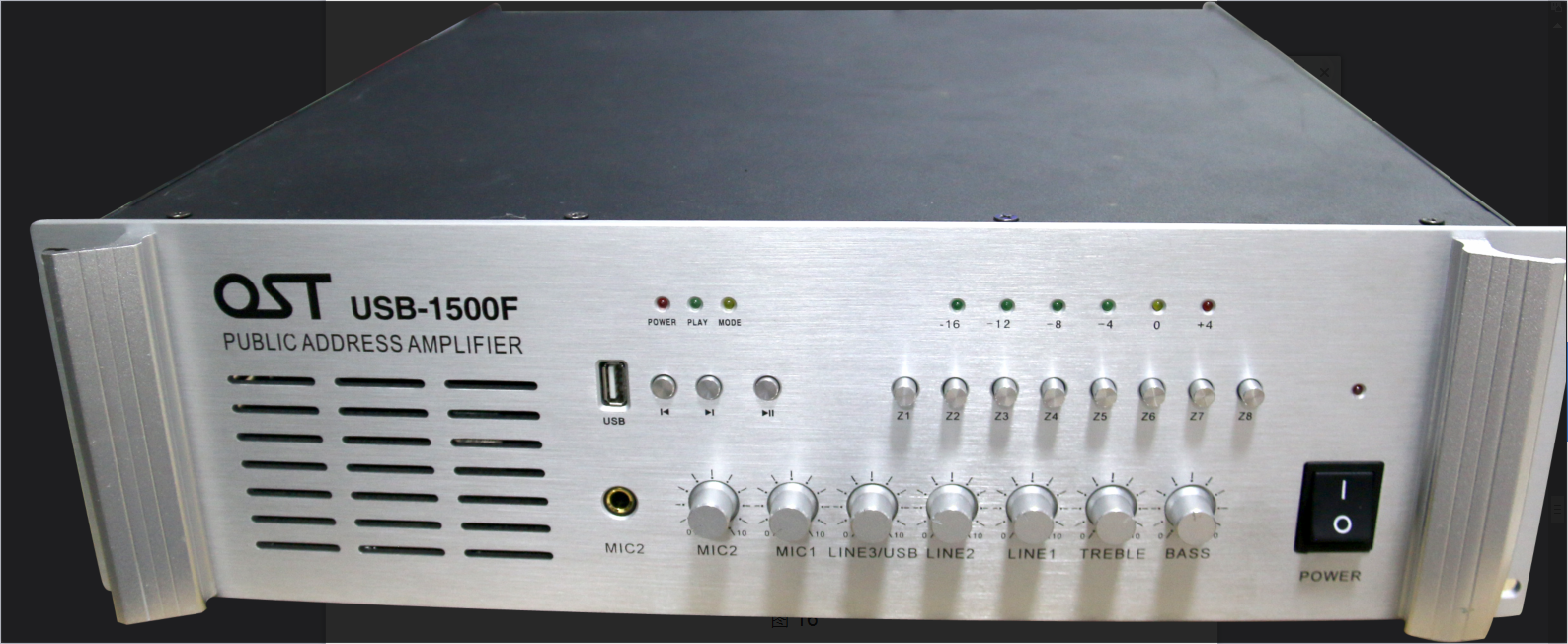 功放根据功率的大小分1000W型、1500W型、2000W型以供选择,外形尺寸统一为630*430*195mm,喊话功能右功放连接麦克风来实现。
