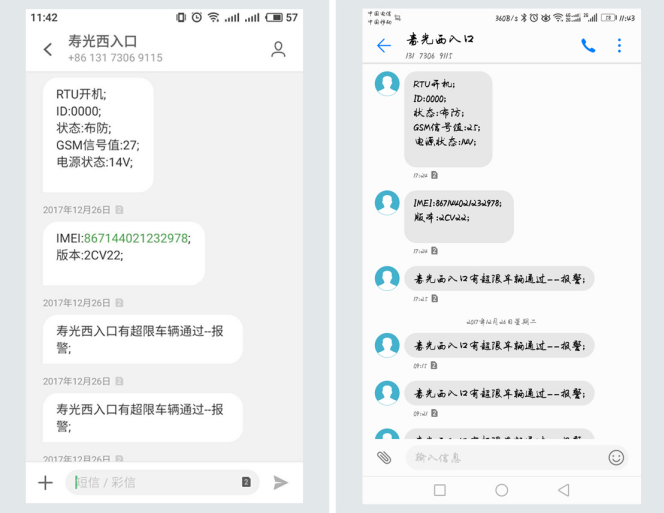 安装在防水控制箱内的无线通讯模块能够实现一旦有超限车辆通过触发报警系统,且收到报警信号处理单元发来的报警命令时,马上向设定的手机端推送一条短信(最多可绑定10部手机终端),短信内容可由用户自行设定,收费站和分公司稽查人员可以根据短信提示进行稽查。